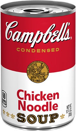 Campbell's Condensed Chicken Noodle Soup. Delicious chicken broth soup with egg noodles and chicken meat without antibiotics. Campbell is known for honest preparation and tasty soups.