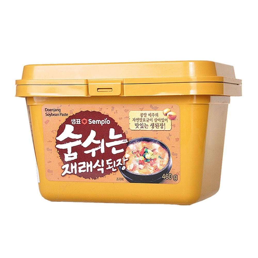 Doenjang Soybean Paste Sempio 460g. Delicious thick Korean sauce for Korean barbecue or to add flavor to dishes. This thick soybean sauce is fermented and aged. You can also add regular salty soy sauce to this product, making it even more savory and rich.