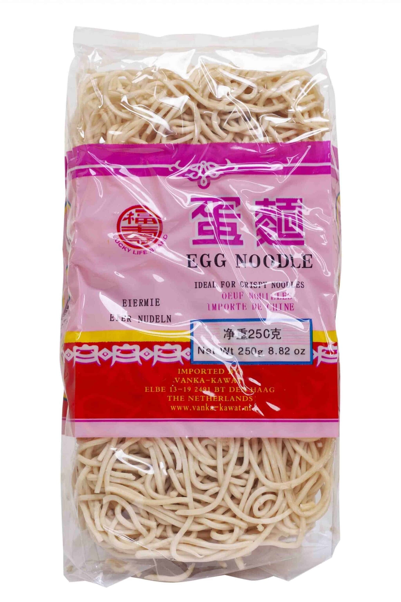 Egg Noodle Lucky Life Brand These long thin egg noodle noodles are easy to prepare, as a base for Asian dishes. Ideal for crispy noodles too