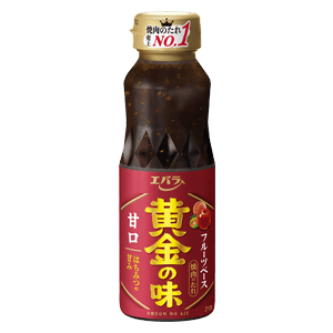 Ogon No Aji Yakiniku Sauce MILD is Japanese a rich and fruity yakiniku sauce made by apples, peaches and plums. This sauce makes the meat taste much better. Enjoy the exquisite harmony of meat and this sauce.