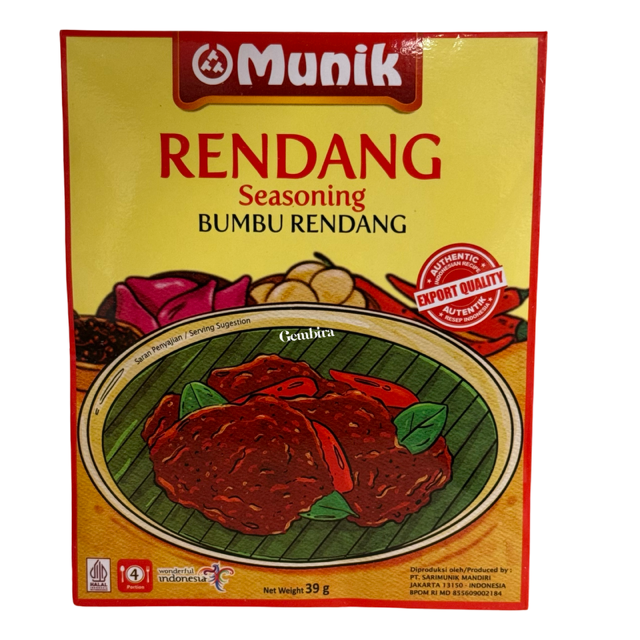 Rendang Bumbu Munik is an Indonesian spice mix for preparing authentic rendang.