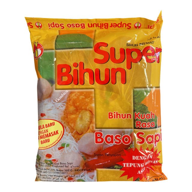 super bihun Baso Sapi is an Indonesian instant fine rice noodles with soup bihun with baso beef flavor prepared in Indonesian style. Ready within 3 minutes.
