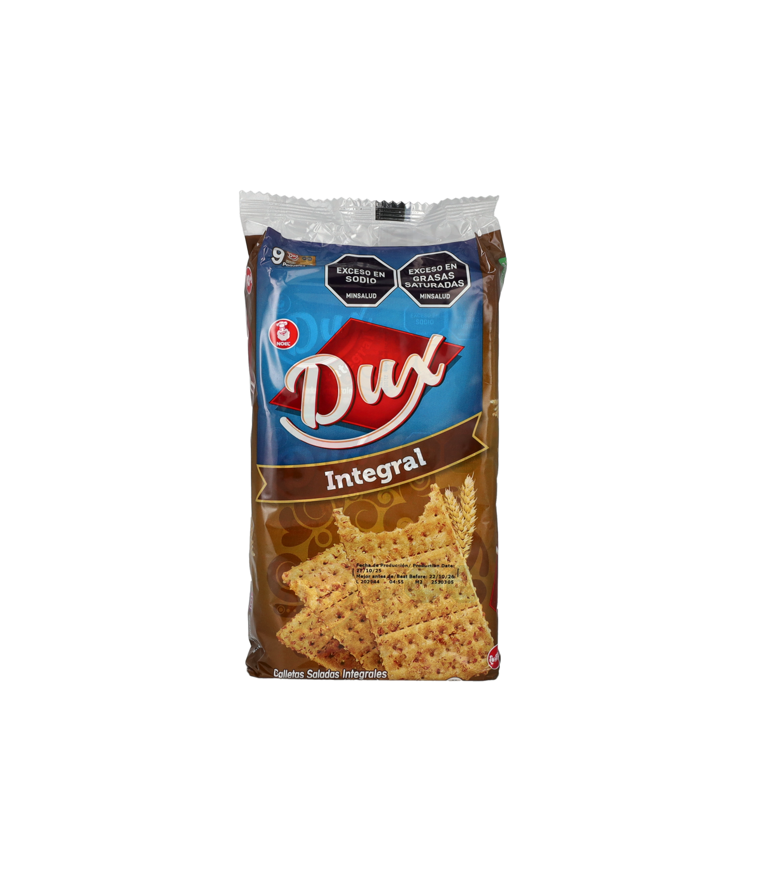 Noel Dux Tarwe crackers oftewel Integral / Wheat crackers in het engels. Er zitten 9 kleine pakken in het 1 grote bak. Netto gewicht 250 gram.