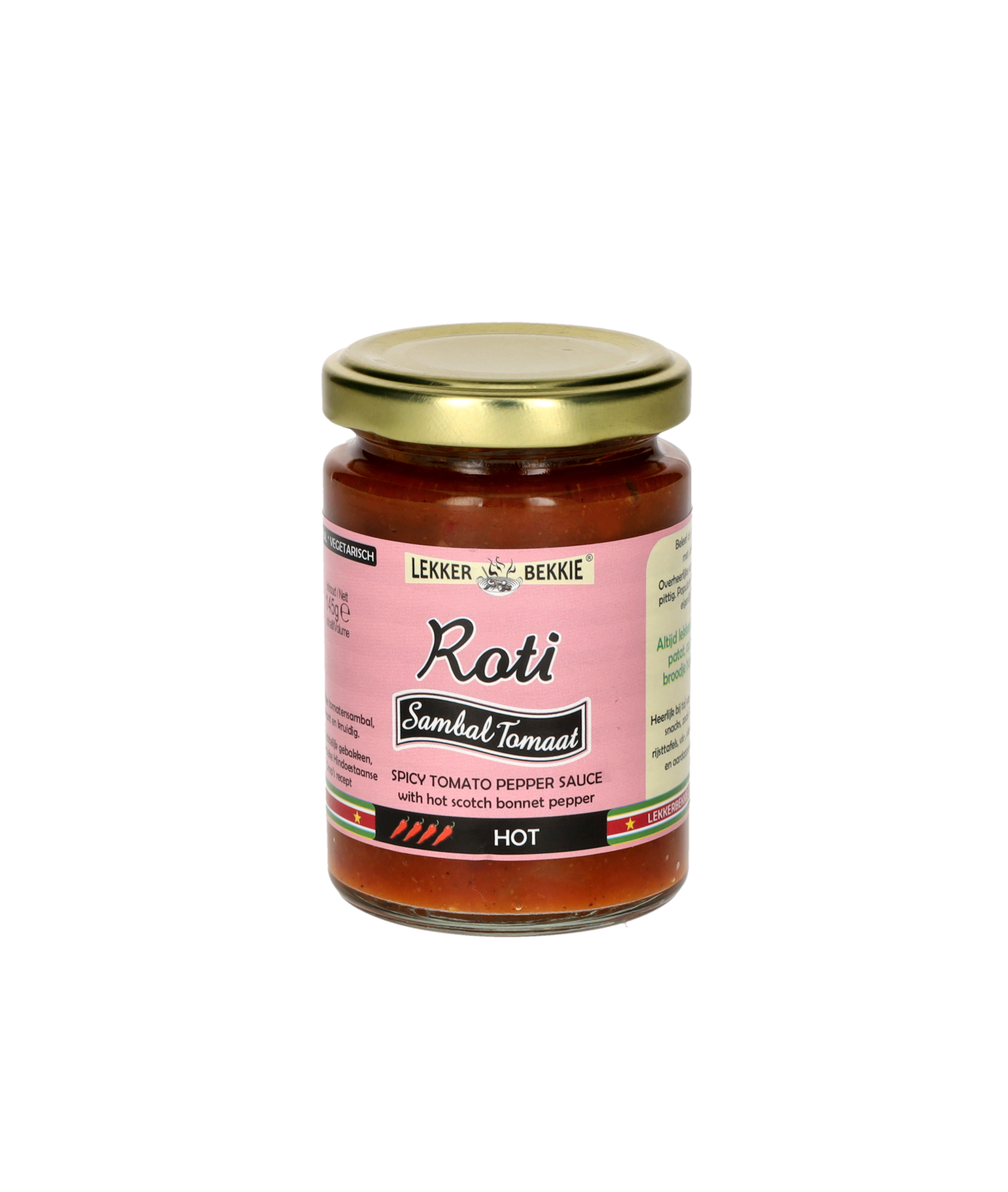 BeschrijvingRoti Sambal Tomaat Hot 145g Lekker Bekkie - kleine pot