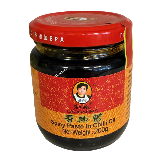 spicy Paste in Chilli Oil van Laoganma combineert pittige chilipepers met gefermenteerde sojabonen voor een diepe, hartige smaak die elk gerecht naar een hoger niveau tilt. Perfect om te roerbakken, als dip of over rijst, noedels of tofu.